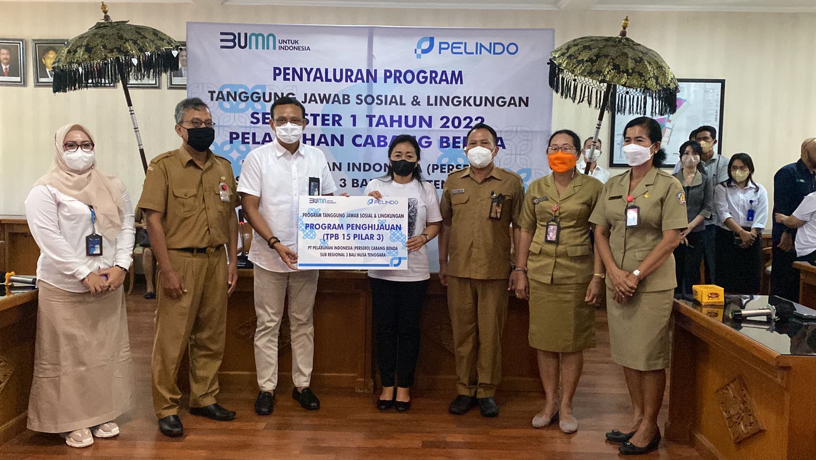 Sebagai bentuk kepedulian sosial terhadap lingkungan, CEO PT Pelindo Regional (Persero) Sub Regional 3 Bali Nusa Tenggara, Ali Sadikin secara simbolis menyerahkan program bantuan Tanggung Jawab Sosial Lingkungan (TJSL) Semester I Pelabuhan Cabang Benoa Tahun 2022, kepada Ketua TP PKK Kota Denpasar, Ny. Sagung Antari Jaya Negara, Senin (20/6) di Kantor Pelindo, Benoa. Program bantuan TSJL kali ini menyasar pembangunan Rumah Bibit Kelompok Tani Astagina Guna Karya, Desa Padangsambian Kelod, Denpasar Barat yang akan difungsikan sebagai sarana pembibitan tanaman. Selain itu, pendirian rumah bibit ini nantinya ditujukan untuk meningkatkan ketahanan pangan bagi masyarakat.