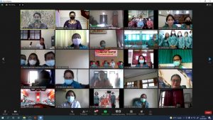 Para peserta mengikuti webinar dengan antusias dan mengajukan pertanyaan seputar prolematika yang mereka hadapi dalam merawat lansia. Pertanyaan peserta dijawab tuntas oleh dua narasumber yang dipandu moderator I Made Sudiana Karang. (sar/hmbal)