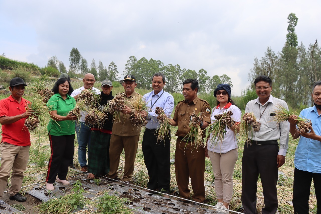 PANEN BAWANG – TPAKD Kabupaten bangli melakukan panen bawang merah dari Poktan penerima KUR. Acara ini juga dihadiri pihak OJK Regional 8 Bali-Nusra.