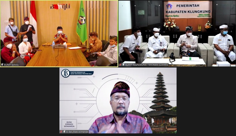Pada Kamis, 25 November 2021, telah dilaksanakan penandatanganan kesepakatan bersama “Distribusi dan Pemasaran Pangan, serta Pengembangan Potensi Daerah” antara Pemerintah Kabupaten Bangli dan Kabupaten Klungkung. Kegiatan ini dilaksanakan secara daring dan dihadiri oleh Kepala Daerah bersama seluruh anggota Tim Pengendalian Inflasi Daerah di dua kabupaten tersebut, serta pimpinan Kantor Perwakilan Bank Indonesia Provinsi Bali. Kegiatan ini dilaksanakan sebagai upaya pemerintah daerah dalam menjaga ketersediaan, kelancaran distribusi dan kestabilan harga komoditas pangan, serta mengembangkan komoditas unggulan masing-masing daerah.