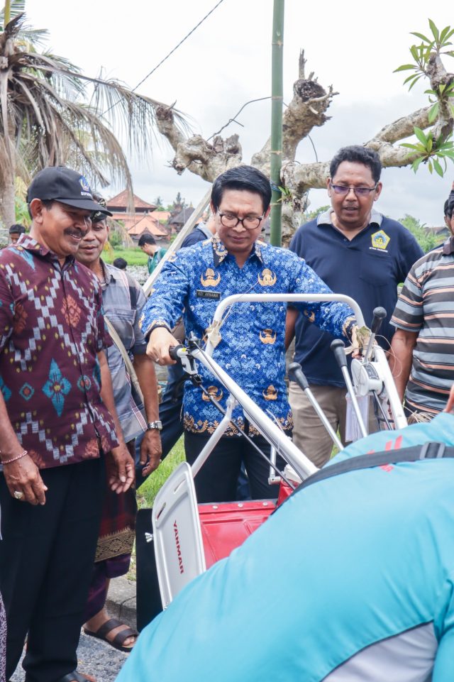 Komitmen Pemerintah Kabupaten Badung mendorong dan mendukung petani Badung untuk meningkatkan produksi, menjaga pasokan dan pengendalian inflasi komoditas hortikultura serta percepatan pertumbuhan ekonomi petani, Sekda Wayan Adi Arnawa mewakili Bupati Badung menyerahkan bantuan berupa alat dan mesin pertanian berupa 10 mesin traktor untuk subak dan kelompok tani di Kabupaten Badung. Adapun subak dan kelompok tani yang menerima bantuan mesin traktor yakni Subak Tanah Putih 1 unit, Subak Gerana 1 unit, Subak Buangga 2 unit, Subak Batan Badung 1 unit, Subak Tegan 2 unit, Subak Babakan 2 unit dan Kelompok Tani Bukit Sari Petang 1 unit. Petani juga menerima bantuan 50.000 benih ikan nila dan bibit tanaman sayuran.