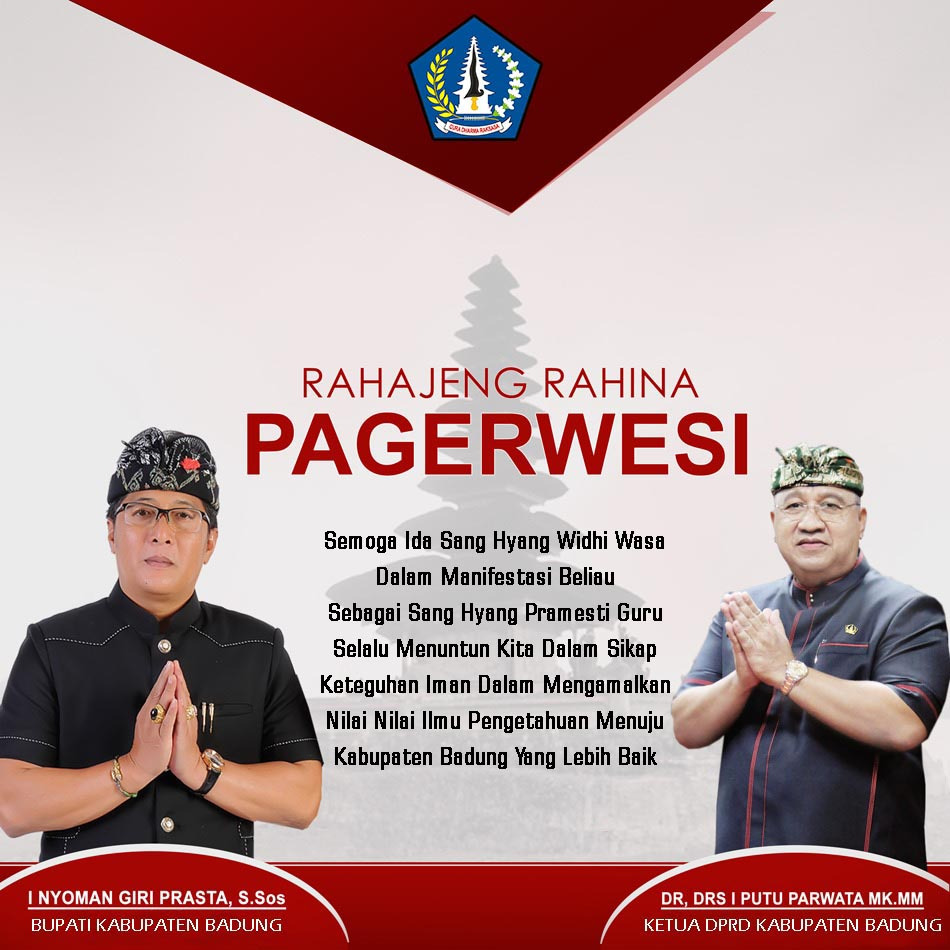 Beranda Badung News Ucapan Hari Raya Pagerwesi Bupati Badung Nyoman Giri Prasta dan Ketua DPRD... Badung NewsBerita UtamaBudaya Ucapan Hari Raya Pagerwesi Bupati Badung Nyoman Giri Prasta dan Ketua DPRD Putu Parwata Penulis BaliViralNews - Februari 3, 2021 FacebookTwitterPinterestWhatsApp Baca Juga Mulai Sekarang, Vaksinasi Booster Lansia Bisa Diberikan Setelah 3 Bulan Vaksinasi Primer