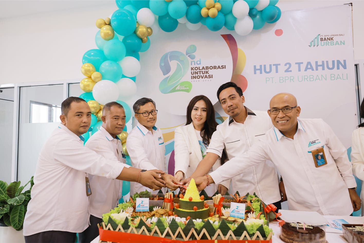 Puncak acara HUT ke-2 Bank Urban yang dilaksanakan secara sederhana di banking hall kantor Bank Urban pada Jumat, 11 November 2022 dihadiri langsung oleh Pemegang Saham Pengendali Kadek Maharani Kemala Dewi didamping Founder Urban Group Dewa Gede Adiputra serta jajaran dewan komisaris, direksi dan karyawan/ti Bank Urban.
