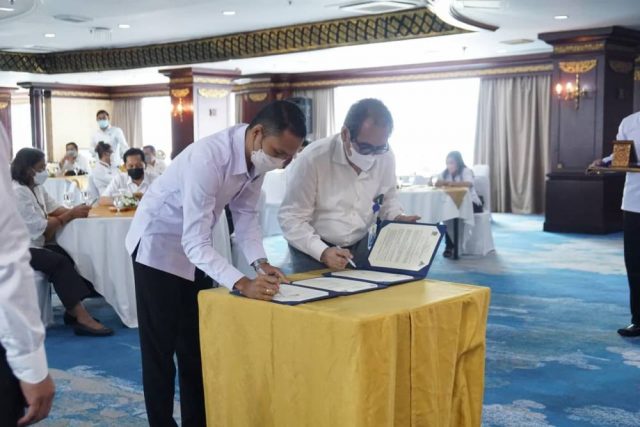 PENGADAAN – Penandatanganan nota kesepahaman antara Unud dengan DPD Ikatan Ahli Pengadaan Indonesia di Grand Bali Beach, Jumat (28/1/2022).