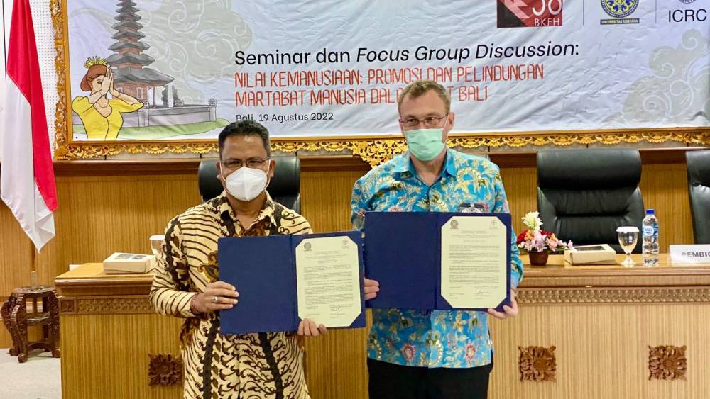 Universitas Udayana dan The International Committee of the Red Cross (ICRC) mengawali kerja sama secara formal yang ditandai dengan penandatanganan memorandum of understanding (MoU) oleh kedua belah pihak bertempat di Ruang Bangsa Gedung Rektorat Unud Kampus Jimbaran, Jumat (19/8/2022).