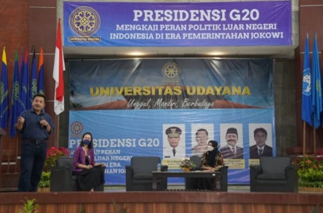 Universitas Udayana bekerja sama dengan Raja Grafindo Persada selenggarakan Seminar Presidensi G20 “Mengkaji Peran Politik Luar Negeri Indonesia di Era Pemerintahan Jokowi” yang diselenggarakan di Gedung Widya Sabha Kampus Bukit Jimbaran, Selasa, (24/5/2022).
