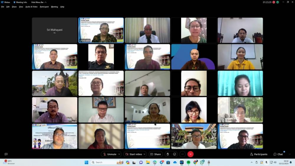Pada Jumat, 15 Desember 2023, Wakil Rektor Bidang Akademik Universitas Udayana Prof. Rai Maya Temaja memberi sambutan sekaligus membuka acara Sosialisasi Permendikbudristek No.53 Tahun 2023 Tentang Penjaminan Mutu Pendidikan Tinggi, Perban PT No. 13 Tahun 2023 Tentang Sistem Akreditasi Nasional Pendidikan Tinggi, yang diselenggarakan secara Daring melalui Aplikasi Webex oleh Lembaga Pengembangan, Pembelajaran, dan Penjaminan Mutu (LP3M) Universitas Udayana.