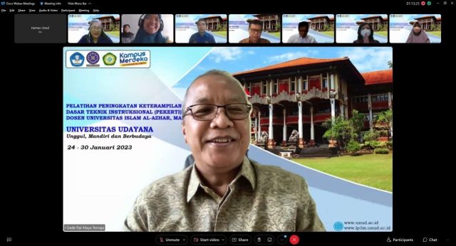 Universitas Udayana (Unud) melalui Lembaga Pengembangan Pembelajaran dan Penjaminan Mutu (LP3M) menyelenggarakan pelatihan “Peningkatan Keterampilan Dasar Teknik Instruksional (PEKERTI) Dosen Universitas Al-Azhar Mataram (UNIZAR) yang berlangsung secara daring, pada 24 Januari – 3 Februari 2023.