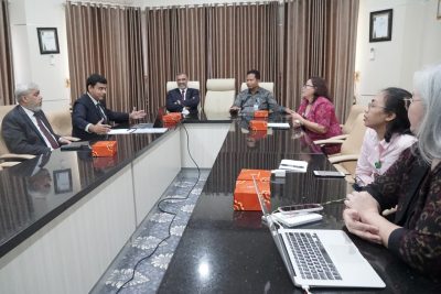 Wakil Rektor Bidang Perencanaan Kerjasama dan Informasi Unud Prof. I Putu Gede Adiatmika didampingi Koordinator Kantor Urusan Internasional (KUI), menerima kunjungan dari National University of Sciences and Technology (NUST) Pakistan bertempat di Gedung Rektorat Kampus Jimbaran, Badung pada Jumat (11/11/2022).