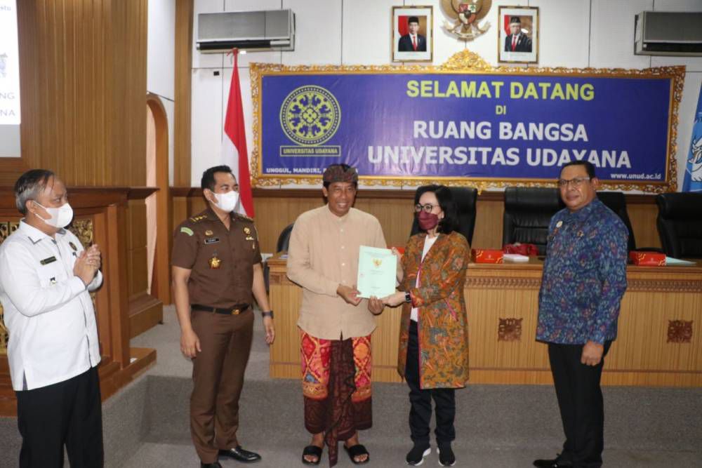 Bertempat di Ruang Bangsa Gedung Rektorat Kampus Jimbaran dilaksanakan penyerahan Sertifikat Hak Pakai Nomor 920 yang terletak di Jalan Uluwatu dengan luas 18.600 meter persegi oleh Badan Pertanahan Nasional dalam hal ini Kantor Pertanahan Kabupaten Badung kepada Kementerian Pendidikan, Kebudayaan, Riset dan Teknologi selaku Pengguna dan Universitas Udayana selaku Kuasa Pengguna berupa lahan tanah, Kamis (18/8/2022).