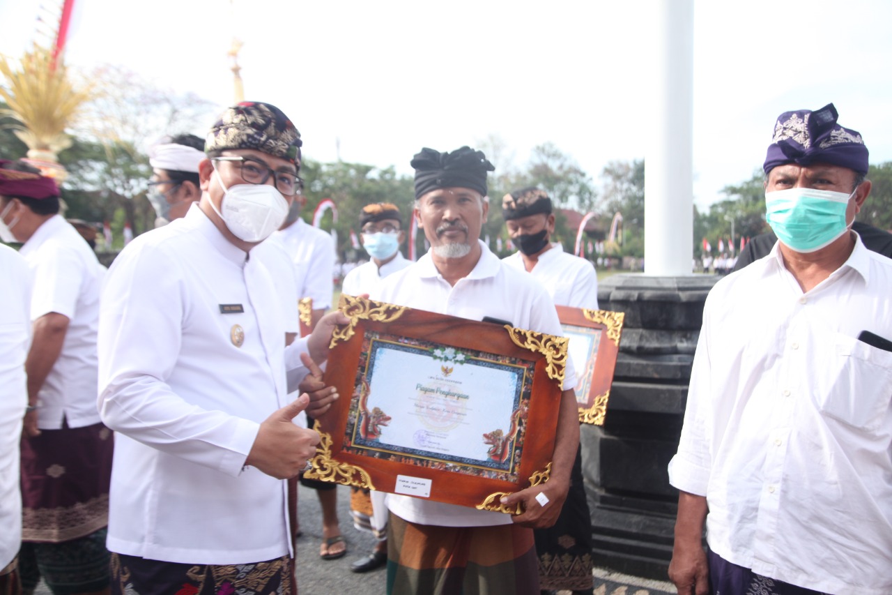 Dalam upacara ini Wakil Walikota Kadek Agus Arya Wibawa membacakan sambutan Gubenur Bali I Wayan Koster menyampaikan ucapan terima kasih atas kerja sama masyarakat Bali, dengan penuh kesadaran dan tanggung jawab, telah dan tetap melaksanakan prokes, karena dengan ini menjadikan Bali bangkit kembali dengan pertumbuhan ekonomi makro sebesar 3,04%, ditandai dengan kunjungan wisatawan mancanegara sebesar 50% atau 9.000 orang/hari, dibandingkan dengan situasi normal sebelum pandemi, dan ini lebih cepat dari target 40% pada bulan Desember.