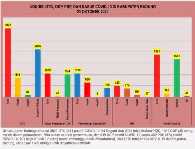 Pasien Dalam Pengawasan (PDP), ujarnya, hari ini ada penambahan 2 kasus PDP. Total kumulatif PDP di Badung menjadi 492 kasus, 374 merupakan kasus konfirmasi positif. Dari jumlah kasus PDP positif tersebut, 299 sembuh/selesai masa perawatan dan 34 masih dalam perawatan.