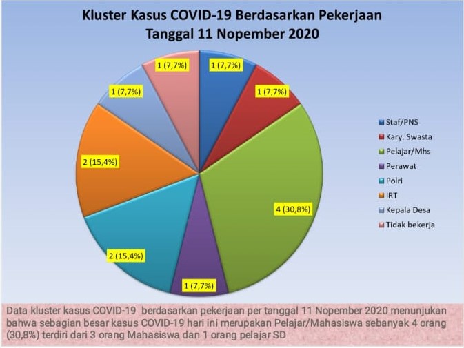 Pada Rabu (11/11/2020) ada tambahan 13 kasus positif/konfirmasi sehingga total kumulatif kasus positif/konfirmasi covid-19 di Kabupaten Badung kini menjadi 2.157 orang. Hal ini dikemukakan Koordinator Kehumasan Gugus Tugas Percepatan Penanganan Covid-19 Badung GN Jaya Saputra.