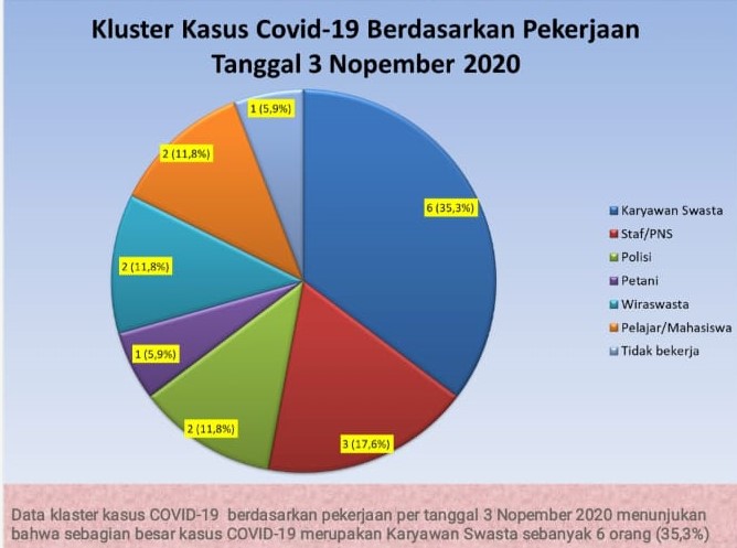Pada Selasa (3/11/2020), ada tambahan 17 kasus positif/konfirmasi sehingga total kumulatif kasus positif/konfirmasi covid-19 di Kabupaten Badung kini menjadi 2.054 orang. Hal ini diungkapkan Koordinator Kehumasan Gugus Tugas Percepatan Penanganan Covid-19 Badung GN Jaya Saputra.