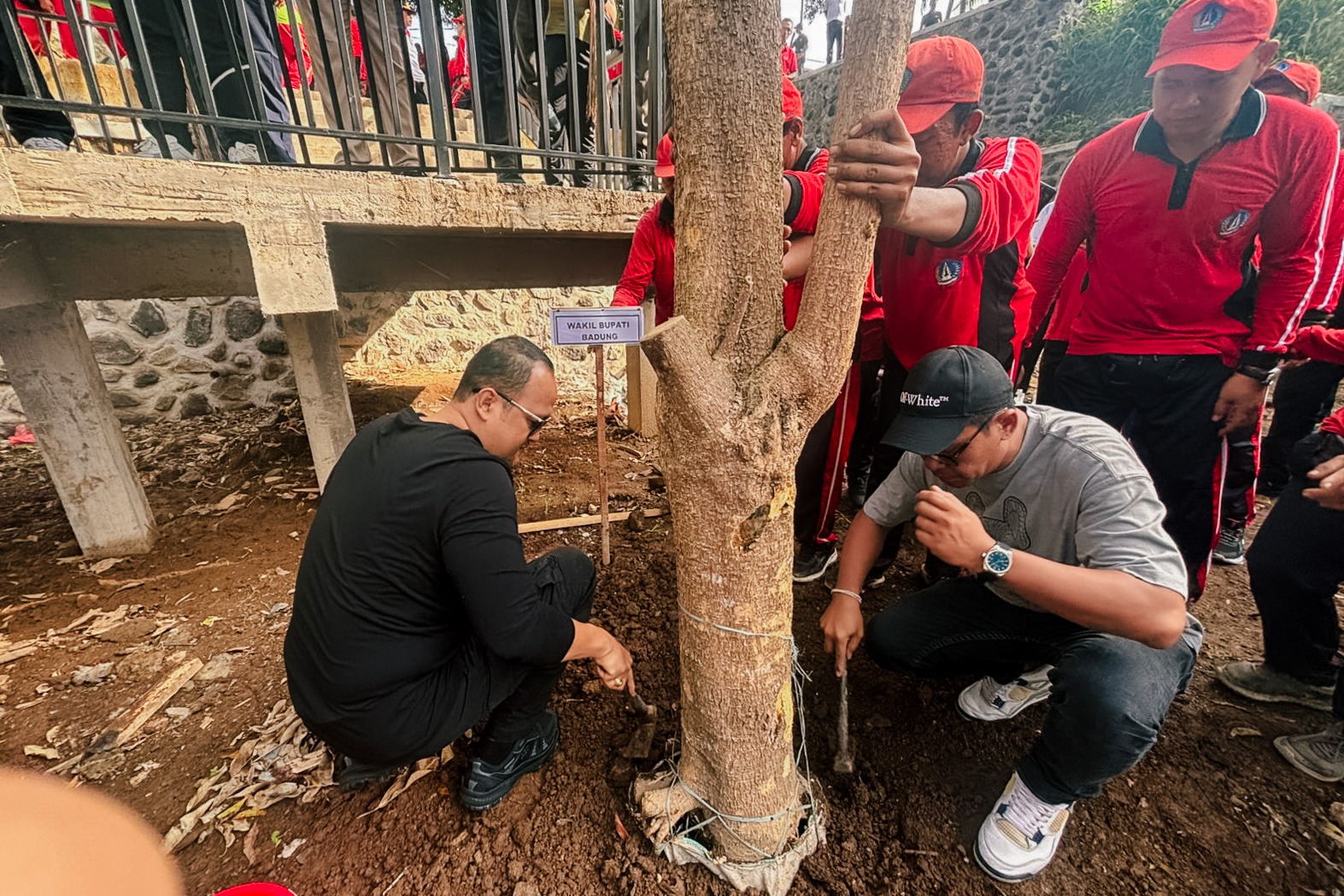 Wakil Bupati Badung Bagus Alit Sucipta bersama Ketua GOW Nyonya Yunita Alit Sucipta melaksanakan kegiatan Gotong Royong Semesta Berencana Penanaman Pohon dan Bersih Sampah Tahap Ke-2 di Jaba Pura Dalem Gede Mambal, Desa Mambal Abiansemal, Minggu (30/11). Kegiatan ini dimulai dengan penyerahan pohon cempaka oleh Wabup kepada Perbekel Mambal dan dari Ketua GOW kepada Bendesa Adat Mambal. Dalam kegiatan ini, ditanam 10 pohon pule, 10 pohon tabebuya dan 10 pohon cempaka.