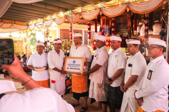Wakil Bupati Badung Bagus Alit Sucipta menghadiri Karya Ngenteg Linggih Padudusan Alit di Pura Bhagawan Penyarikan, Banjar Adat Kelan Desa, Tuban, Senin (6/10). Karya dipuput oleh Ida Pedanda Gede Oka Manuaba dari Griya Oka Intaran Sanur dan dihadiri oleh Bendesa Adat Kelan I Wayan Sukerena, anggota DPRD Badung I Nyoman Gaha Wicaksana, Dinas Kebudayaan, Lurah Tuban I Gede Saka, Camat Kuta D. Ngurah Bayudewa beserta unsur Tripika Kecamatan Kuta.