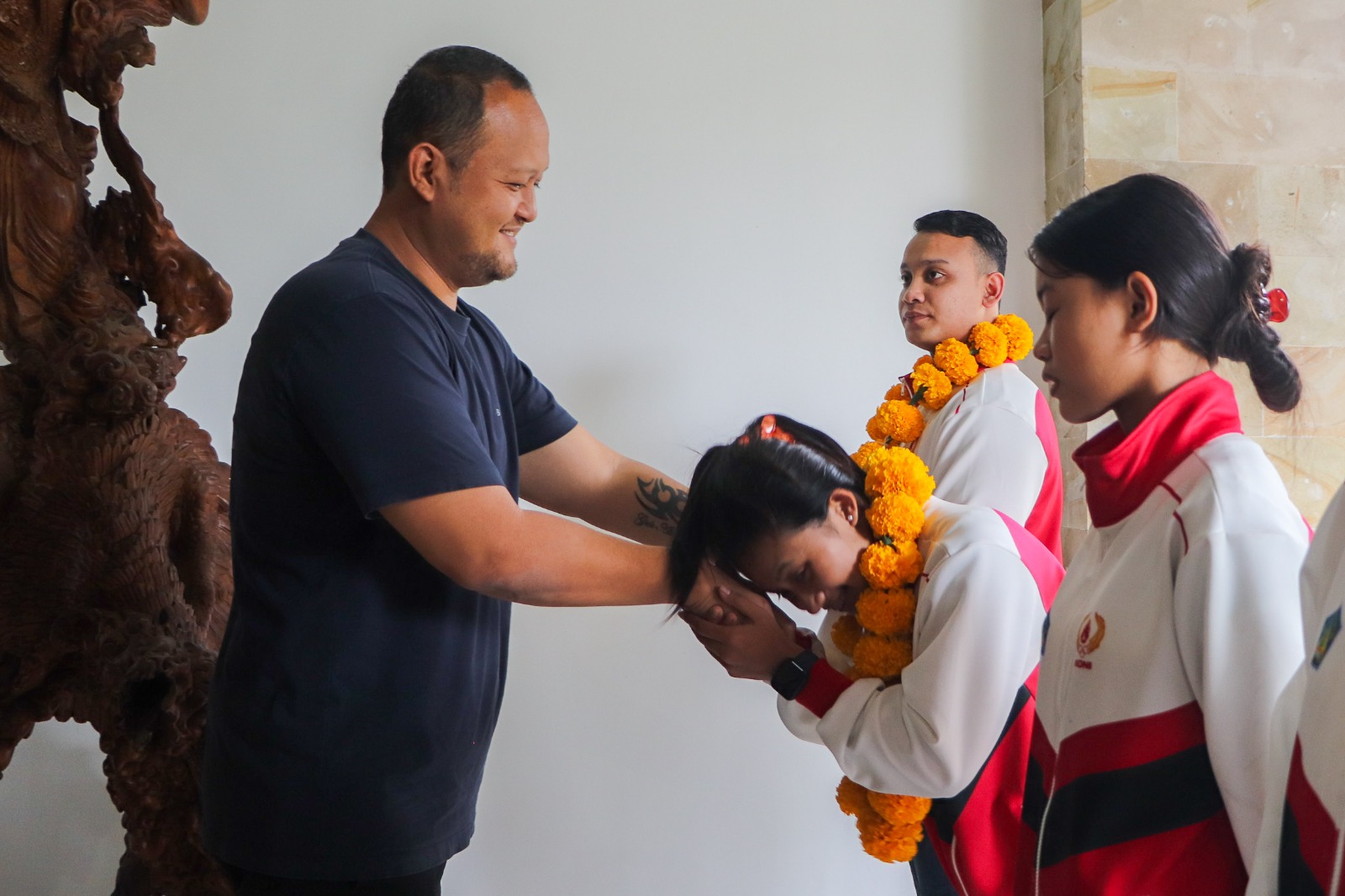 Dalam kesempatan tersebut, Wabup Bagus Alit Sucipta mengalungkan bunga kepada para atlet sebagai bentuk penghargaan atas perjuangan dan prestasi yang telah diraih dalam ajang bergengsi nasional di Kudus, Jawa Tengah.
