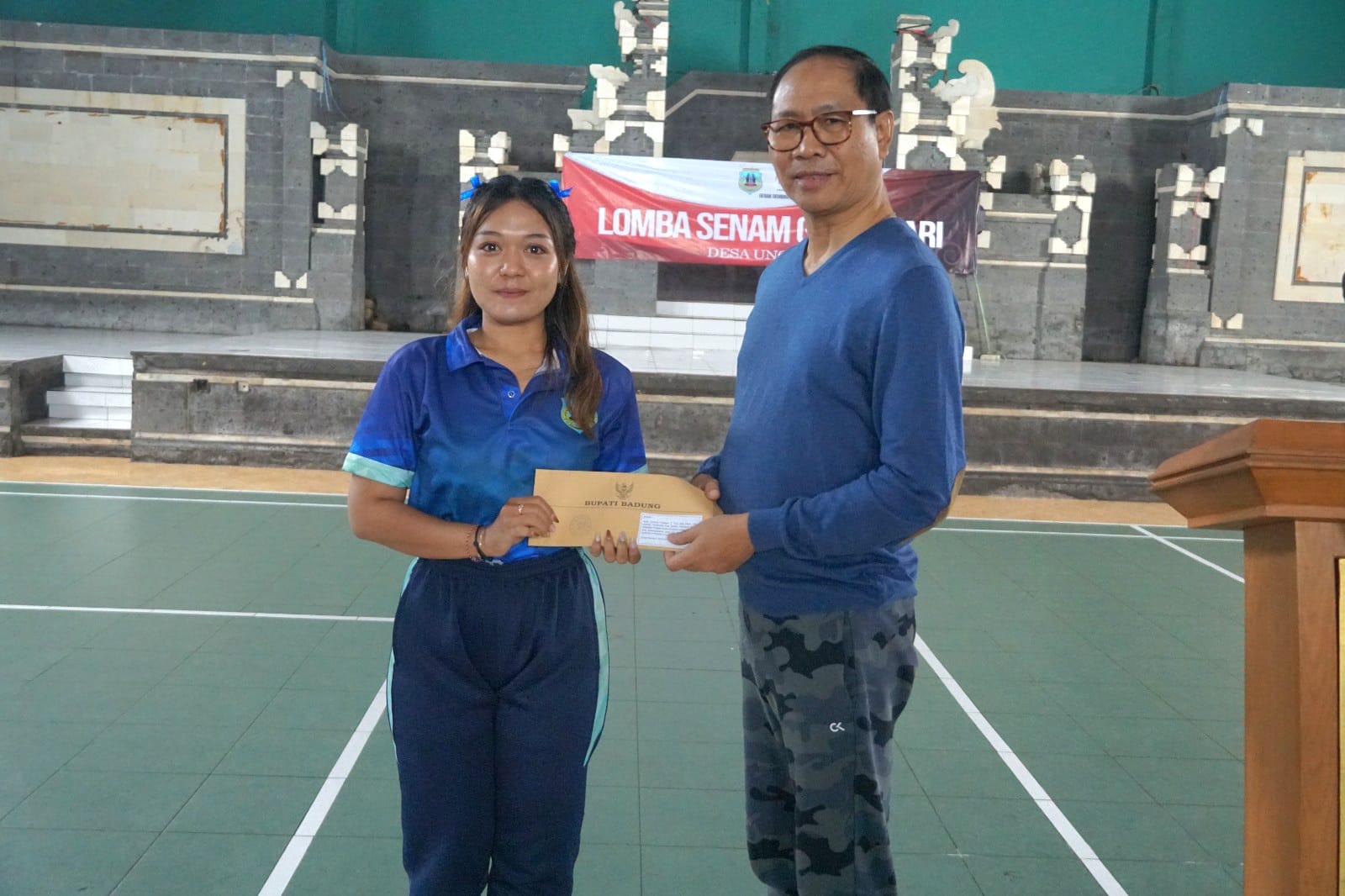 Wakil Bupati Badung I Ketut Suiasa membuka Lomba Senam Garbasari Desa Ungasan yang dilaksanakan oleh Panitia Gerak Gembira Ungasan di Wantilan Dirgha Labha, Kecamatan Kuta Selatan, Minggu (9/6). Turut hadir Perbekel Ungasan I Made Kari, seluruh peserta dan undangan lainnya. Dalam kesempatan itu, Wabup Ketut Suiasa juga menyerahkan dana kegiatan Rp 15 juta.