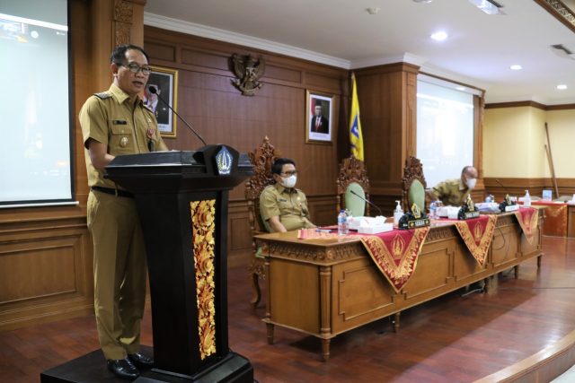 Mengingat masih dalam situasi Pemberlakuan Pembatasan Kegiatan Masyarakat (PPKM), Pemerintah Kabupaten Badung menggelar Musrenbang Rencana Kerja Pemerintah Daerah (RKPD) Kecamatan Tahun 2022 secara virtual (aplikasi zoom meeting). Musrenbang yang mengusung tema “Percepatan Pemulihan Ekonomi Daerah Melalui Revitalisasi Sektor Unggulan dan Penguatan Ekonomi Kerakyatan” ini dibuka oleh Wakil Bupati Badung I Ketut Suiasa didampingi Sekretaris Daerah I Wayan Adi Arnawa dan Kepala Bappeda I Made Wira Dharmajaya, camat se-Kabupaten Badung, Tim Penyusun RKPD, dari Ruang Kriya Gosana, Puspem Badung, Selasa (2/2). Forum ini juga diikuti oleh kepala OPD di lingkungan Pemkab Badung, lurah dan kepala desa se-Badung dari kantor masing-masing.