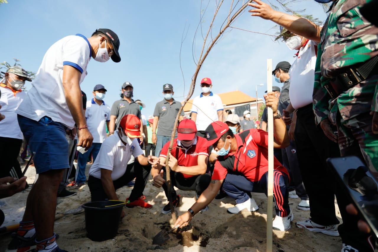 POHON CEMARA – Wabup Suiasa hadiri penanaman pohon cemara udang serentak dan bersih-bersih Pantai di Tanjung Benoa, Kuta Selatan, Senin (21/6).