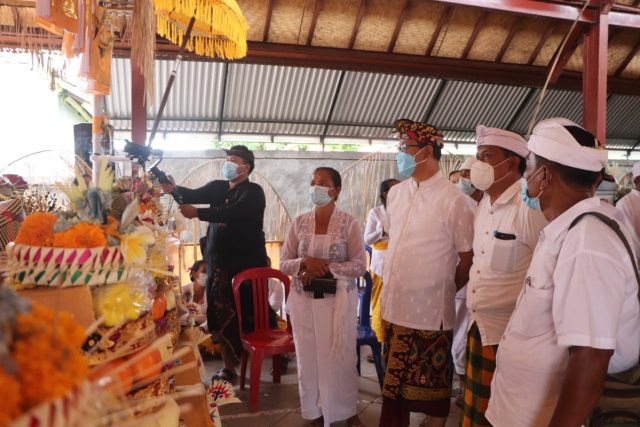 NYEKAH MASAL – Wabup Suiasa disaat menghadiri Karya Nyekah Masal, Mepetik dan Metelubulanan Krama Banjar Aseman, Desa Abinsemal, Senin (5/4).