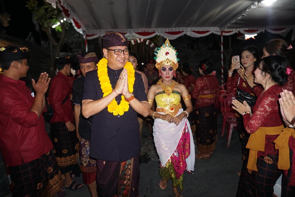 HUT – Wabup Badung Ketut Suiasa menghadiiri Puncak Perayaan HUT ST Eka Dharma Puspa Kerti ke-59 sekaligus pelantikan pengurus baru masa bakti 2019-2022 di Banjar Muding Kelod Desa Adat Kerobokan, Kec. Kuta Utara, Senin (12/8) malam.