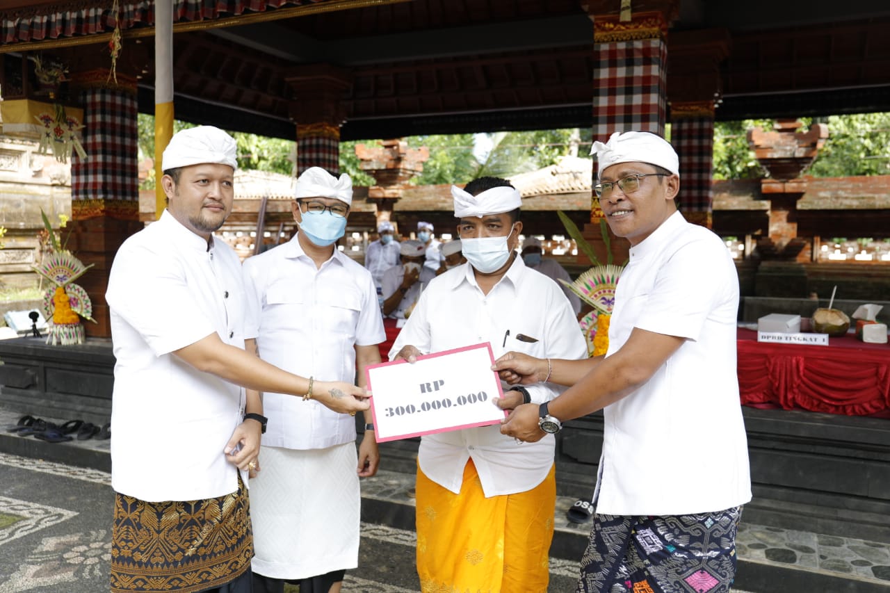 Pada kesempatan tersebut, Wabup Suiasa juga menyerahkan punia bantuan Bupati secara simbolis Rp 300 juta kepada Bendesa Adat Ambengan I Made Miasa.