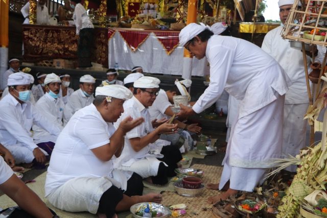 Seiring rampungnya perbaikan pelinggih di Pura Dalem Kahyangan, Banjar Anyar, Desa Adat Kerobokan, bertepatan dengan rahina Weraspati Umanis Wuku Dungulang atau Umanis Galungan pada Kamis (15/4), dilaksanakan Upacara Melapas, Mendem Pedagingan, Karya Ngenteg Linggih Mapedudusan Agung Menawa Ratna Tawur Balik Sumpah lan Nyurud Ayu dengan tetap mengedepankan protokol kesehatan. Upacara yang dipuput oleh Ida Pedanda Gede Tarukan Manuaba dari Griya Dalung ini juga dihadiri Wakil Bupati Badung I Ketut Suiasa yang sekaligus mendapat kehormatan melakukan prosesi mendem pedagingan di pelinggih Pepelik disertai menyerahkan punia Rp 25 juta dan dari Ketua DPRD I Putu Parwata Rp 5 juta kepada Manggala Karya I Ketut Kardiasa.