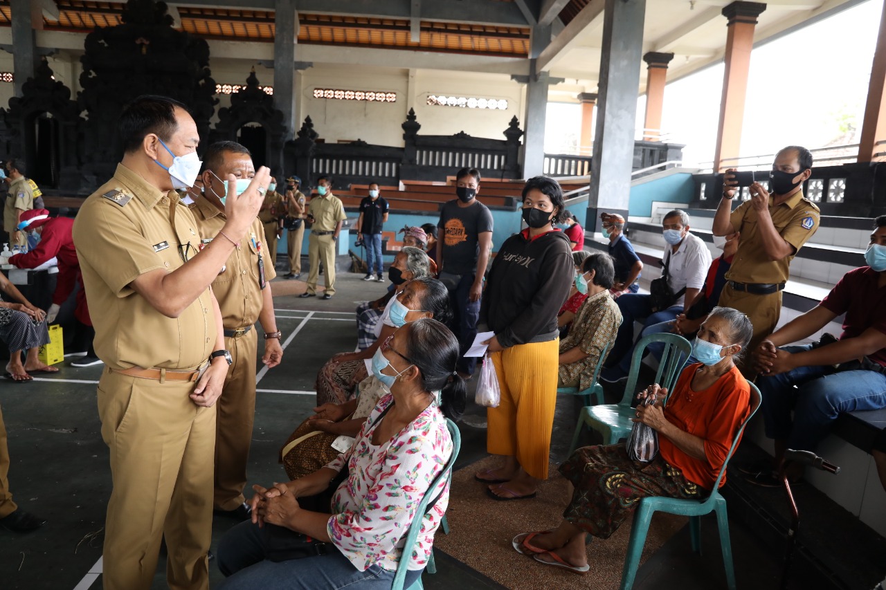 Wakil Bupati Badung I Ketut Suiasa terus bergerak memastikan pemberian vaksin kepada masyarakat. Setelah sebelumnya melakukan pemantauan pelaksanaan vaksinasi di beberapa wilayah, giliran pada Senin (22/3) melaksanakan pemantauan vaksinasi masal bagi masyarakat Desa Adat Kapal, Kelurahan Kapal, Kecamatan Mengwi. Pelaksanaan vaksinasi yang dilaksanakan di Wantilan Desa Adat Kapal ini, mendapat sambutan antusias dari masyarakat Kapal.