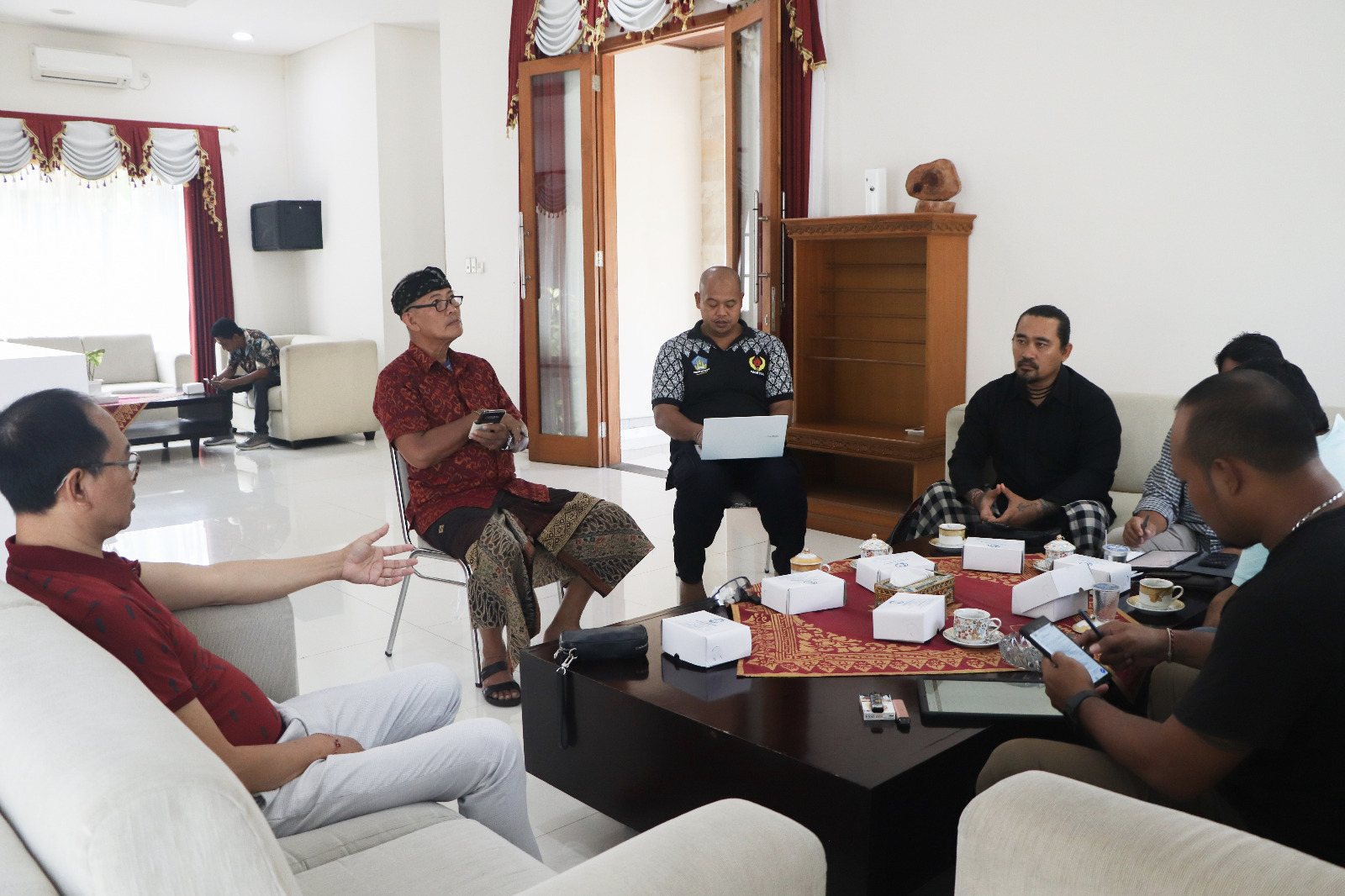 Wakil Bupati Badung I Ketut Suiasa selaku Ketua Ikatan Pencak Silat Indonesia (IPSI) Bali memimpin rapat kerja pencak silat, bertempat di Rumah Jabatan Wakil Bupati Badung, di Puspem Badung, Sabtu (11/2). Rapat ini juga dihadiri Sekretaris Umum IPSI Bali Nyoman Yamadhiputra, Ketua Harian IPSI Bali Bagus Jagra Wibawa, Bendahara IPSI Bali AA Ngurah Rahmadi, beserta para pengurus IPSI Bali.