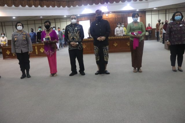 KOMPENSASI – Wagub Cok. Ace saat penyerahan kompensasi kepada korban tindak pidana terorisme, Kamis (4/2/2021).