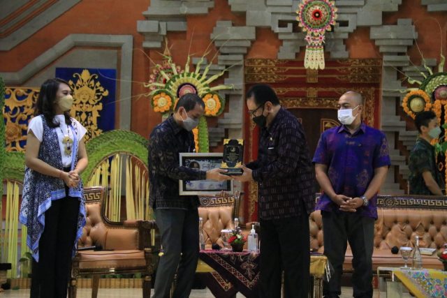 PIAGAM – Wagub Cok. Ace menerima piagam seusai menjadi pembicara pada Bincang Budaya Nata Cintya Mani, Sabtu (27/11/2021).