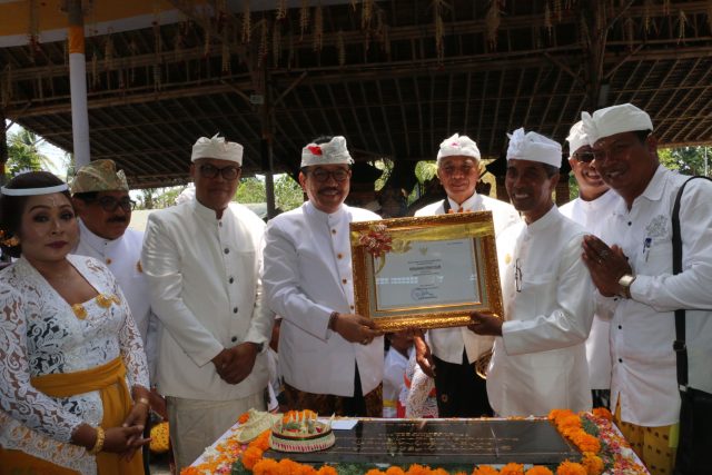 TAKBENDA – Wagub Cok. Ace menyerahkan penetapan warisan budaya takbenda kepada Desa Celuk.