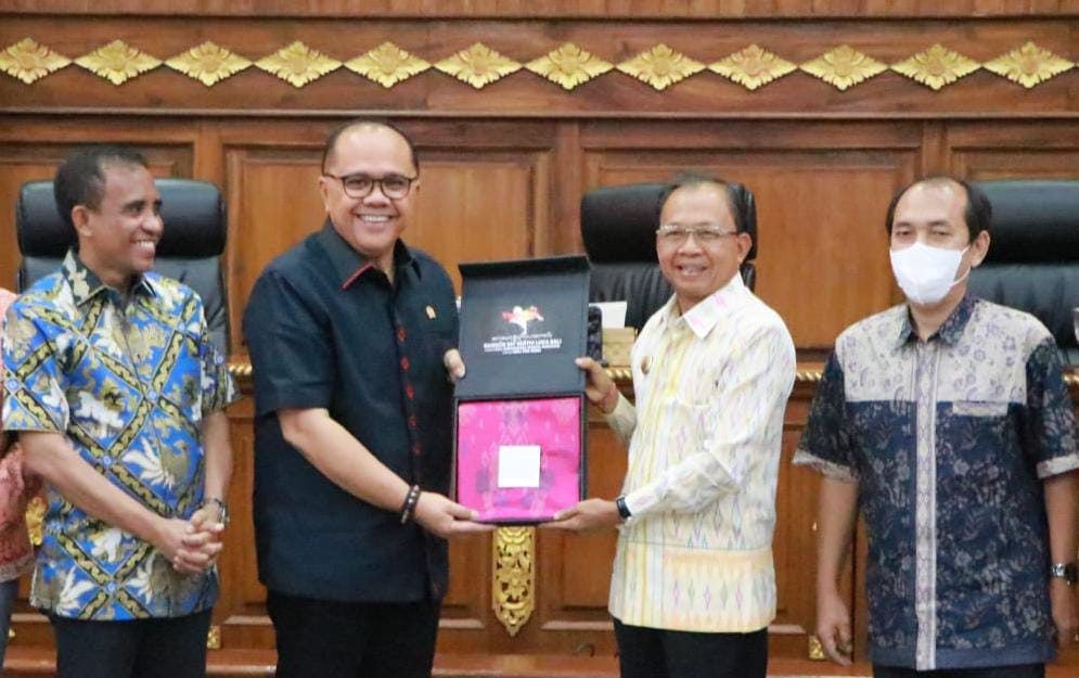 Gubernur Bali, Wayan Koster menerima kunjungan kerja Komisi II DPR RI yang dipimpin oleh Junimart Girsang di Gedung Wiswa Sabha Utama, Kantor Gubernur Bali pada, Senin (Soma Pon, Pahang) 11 Juli 2022 dan dihadiri oleh Kapolda Bali, Irjen Pol. Putu Jayan Danu Putra, Kepala Kejaksaan Tinggi Bali, Ade T. Sutiawarman, dan Ketua Pengadilan Tinggi Denpasar, Mochamad Hatta.