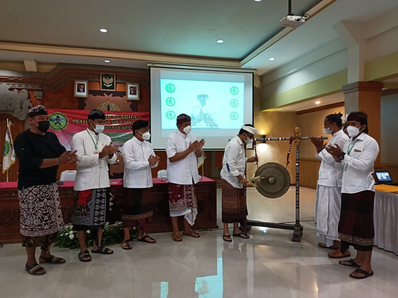 Walikota Denpasar, IGN Jaya Negara membuka Lokasabha I Pratisantana Sira Arya Kanuruhan (PSAK) Kota Denpasar ditandai dengan pemukulan gong, di Gedung Wanita Shanti Graha Kota Denpasar, Minggu (16/1). Hadir dalam kesempatan tersebut Ketua Umum Pratisantana Sira Arya Kanuruhan Kota Denpasar yang juga selaku Wakil Walikota Denpasar, Kadek Agus Arya Wibawa beserta undangan lainnya.