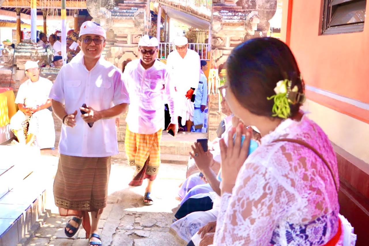 NGENTEG LINGGIH – Walikota I Gusti Ngurah Jaya Negara didampingi Sekda Kota Denpasar IB Alit Wiradana menghadiri Karya Ngenteg Linggih lan Padudusan Alit Griya Oka Sanur, bertepatan dengan Redita Umanis Wuku Warigadian, Minggu (1/9).