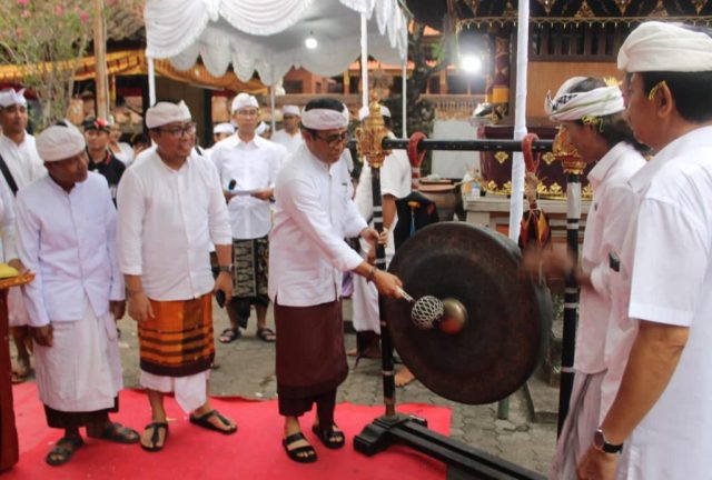 PERAYAAN SARASWATI – Walikota IGN Jaya Negara bersama Wawali Denpasar I Kadek Agus Arya Wibawa menghadiri dan membuka perayaan Rahina Suci Saraswati, Mahawarga Bhujangga Waisnawa di Pura Dalem Pauman, Pedungan Denpasar, Sabtu (16/12).