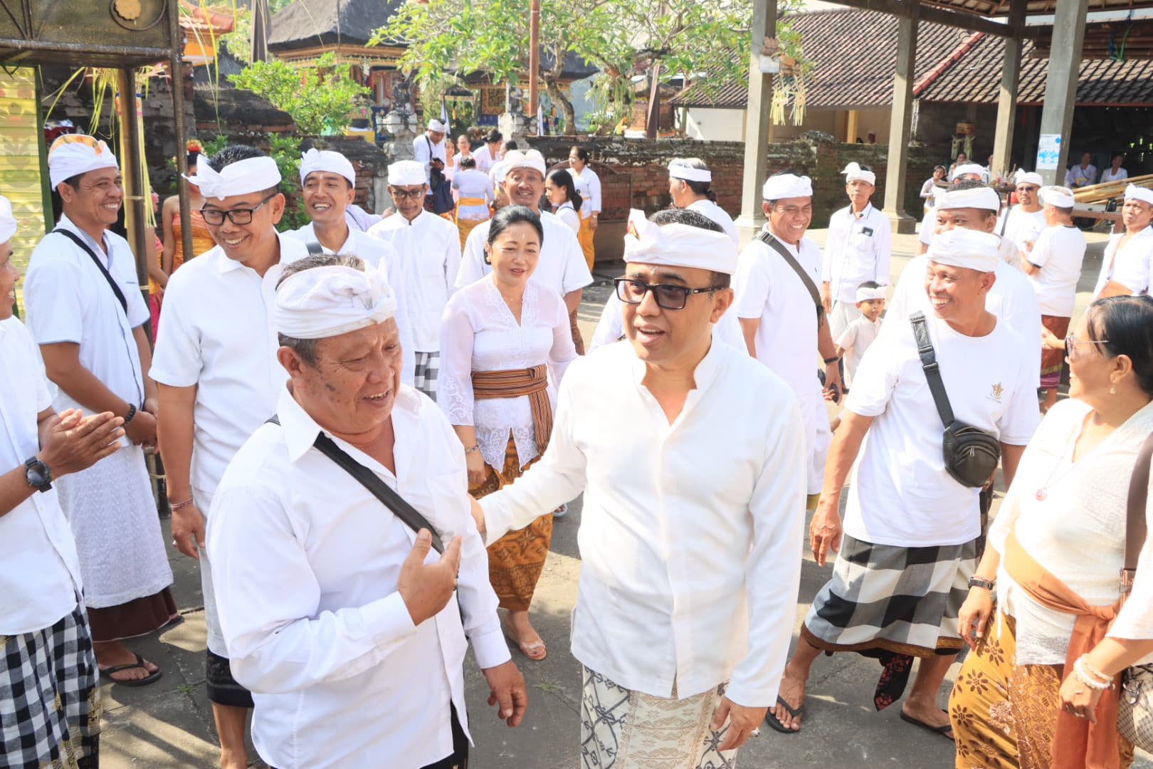 PUJAWALI – Walikota Denpasar I Gusti Ngurah Jaya Negara menghadiri pujawali di Pura Desa Adat Oongan, Sabtu (3/5).