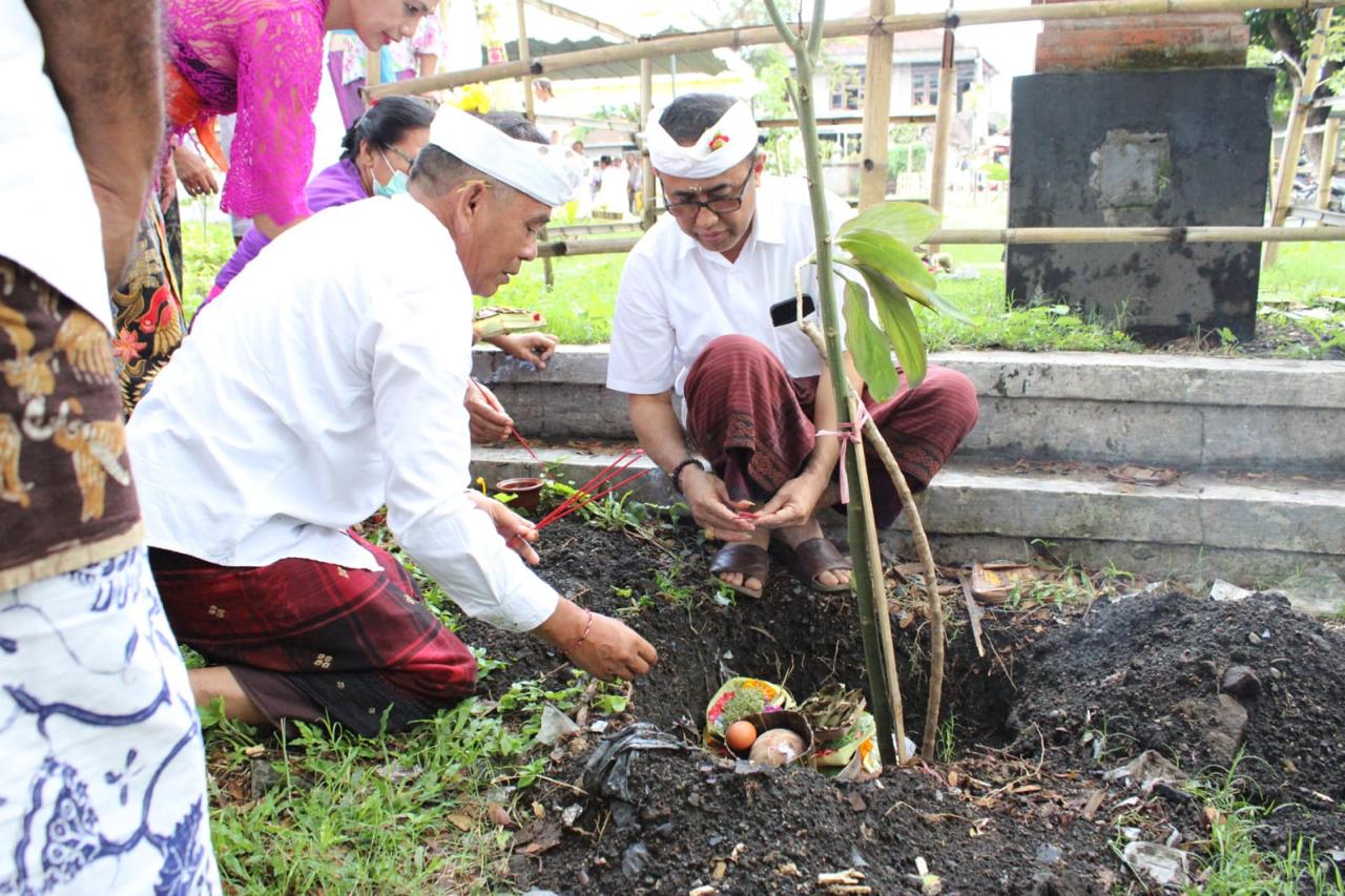 Walikota Denpasar I Gusti Ngurah Jaya Negara melaksanakan upakara Mendem Dasar serangkaian dengan proses pembangunan tempat Nyekah di Setra Bugbugan Setra Agung Badung, bertepatan dengan Rahina Tilem Kawolu, Jumat (9/2). Pembangunan tersebut merupakan upaya menyempurnakan tempat pengabenan yang sebelumnya telah ada.