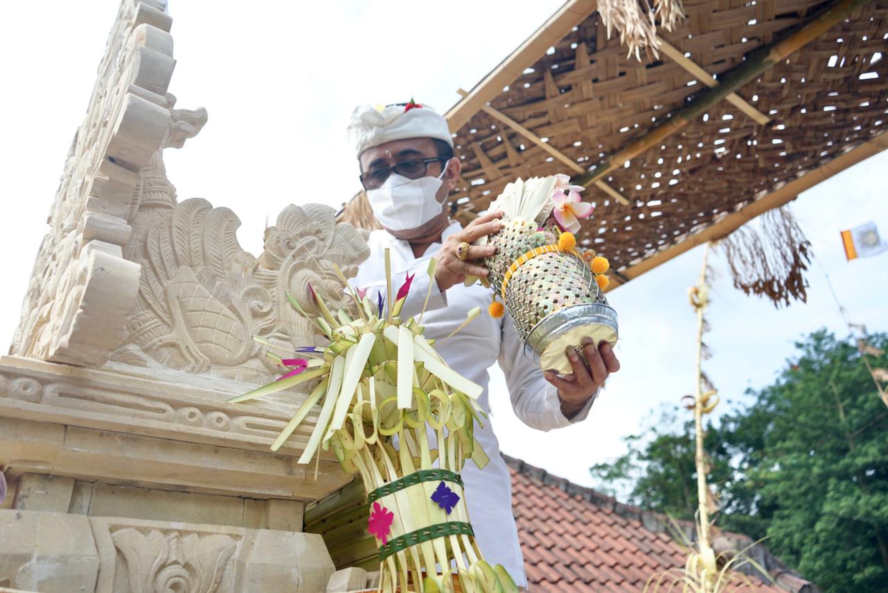 RSI GANA – Walikota GN Jaya Negara menghadiri upacara Mecaru Rsi Gana di Sekolah Sushrusa, Minggu (28/3).