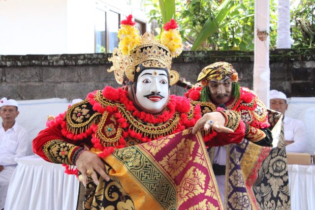 Walikota Denpasar, IGN Jaya Negara ngayah mesolah Topeng Arsa Wijaya serangkaian Puncak Karya Rsi Gana Manca Kelud, Mamungkah, Ngenteg Linggih, Padudusan Alit lan Mupuk Pedagingan di Banjar Punduh Kulit, Desa Peguyangan Kaja bertepatan dengan Redite Kliwon Medangkungan, Minggu (5/3).