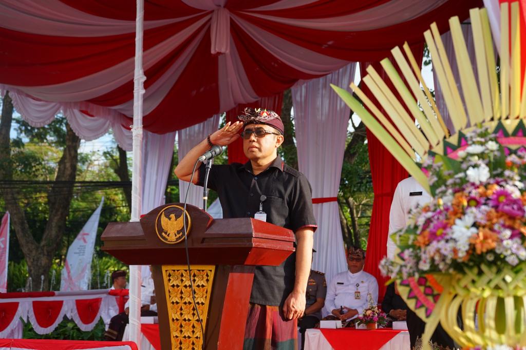 HUT PROVINSI BALI – Walikota GN Jaya Negara menimpin apel peringatan HUT ke-65 Provinsi Bali, Senin (14/8/2023).