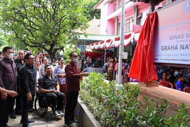 Walikota Denpasar, I Gusti Ngurah Jaya Negara meresmikan Graha Nawasena Rumah Harapan Disabilitas Kota Denpasar, Jumat (2/12). Sebagai pengelolanya, turut dikenalkan Kelompok Usaha Bersama (KUBE) Gantari Jaya yang digawangi penyandang disabilitas kreatif Kota Denpasar. Peresmian ini diharapkan mampu menjadi ruang inspirasi dan inovasi guna menggugah semangat wirausaha penyandangan disabilitas di Kota Denpasar.