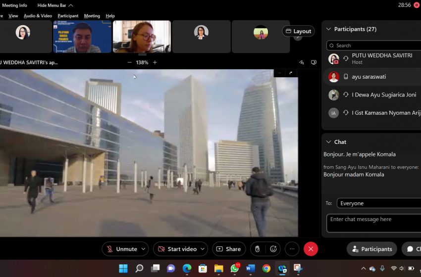 UPT Bahasa Universitas Udayana mengadakan kegiatan kursus daring bahasa Perancis. Kegiatan kursus ini dilakukan secara daring yakni melalui webex meeting pada Senin (20/6/2022 ) pukul 14.00 hingga 15.30 Wita. Kursus bahasa Perancis ini menghadirkan pengajar bahasa Perancis dari Warung Perancis Universitas Udayana. Adapun peserta kursus didominasi oleh mahasiswa doktoral Universitas Udayana.