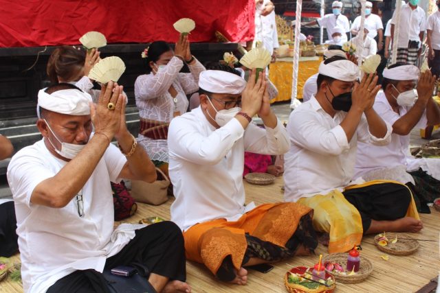 “Selain itu, untuk menyelaraskan dan menjaga hubungan antara palemahan, pawongan dan parahyangan, sehingga tercipta hubungan yang harmonis terutama saat menghadapi situasi pandemi covid-19 saat ini,” kata Arya Wibawa.