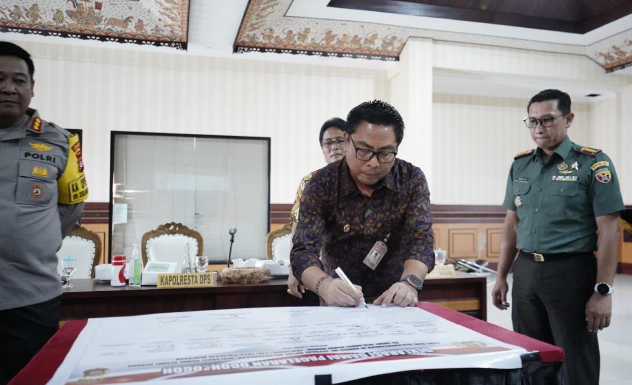 Rapat koordinasi tersebut diakhiri dengan penandatanganan Deklarasi Damai bersama seluruh stakeholder terkait untuk terus berkoordinasi dan berkolaborasi dalam pelaksanaan pengamanan perayaan Nyepi. (gie/hmden)