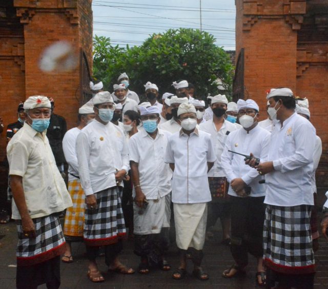NGEREBONG – Wakil Walikota Denpasar, I Kadek Agus Arya Wibawa mendampingi Gubernur Bali Wayan Koster menghadiri pelaksanaan tradisi Ngerebong di Pura Agung Petilan bertepatan dengan Redite Pon Wuku Medangsia, Minggu (28/11).