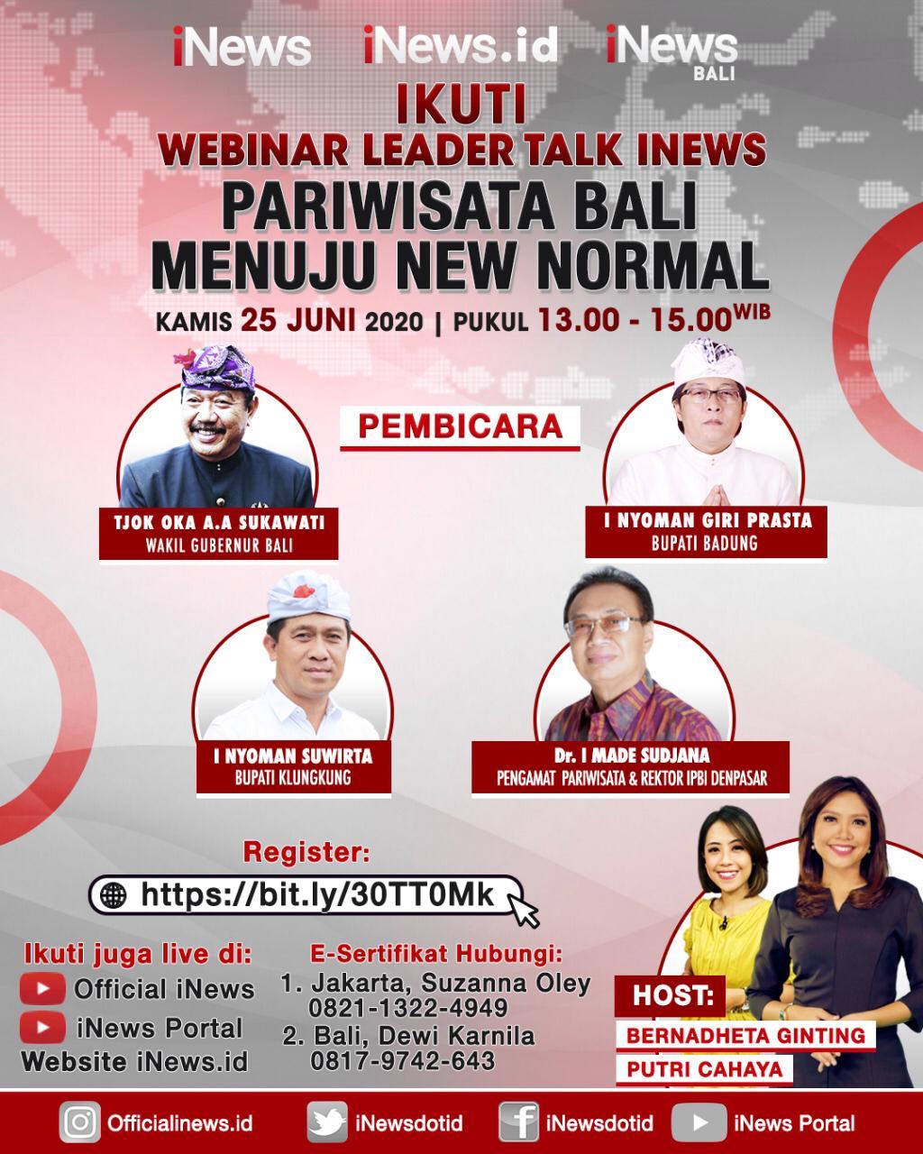 Beranda Bali News Webinar Leader Talk INews: Pariwisata Bali menuju New Normal Bali NewsBerita Utama Webinar Leader Talk INews: Pariwisata Bali menuju New Normal Penulis BaliViralNews - Juni 24, 2020 FacebookTwitterPinterestWhatsApp Baca Juga Satgas Covid-19 Denpasar Utara Gelar Pemantauan Prokes