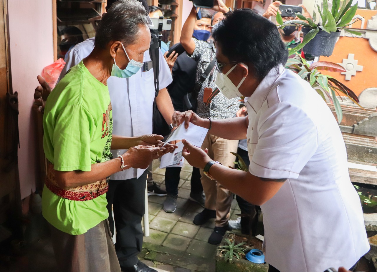 Pemerintah Kabupaten Badung terus melakukan pemantauan penyaluran Bantuan Langsung Tunai (BLT) yang bersumber dari APBD Badung dengan memanfaatkan sistem QR Code. Untuk memastikan bantuan dan kebijakan politik anggaran Pemkab Badung sampai ke tangan masyarakat khususnya yang terdampak pandemi covid-19, Bupati Nyoman Giri Prasta didampingi Ketua DPRD Putu Parwata dan Sekda Wayan Adi Arnawa turun langsung memantau penyaluran BLT di wilayah Kecamatan Kuta Utara, meliputi Kelurahan Kerobokan, Kelurahan Kerobokan Kelod dan Desa Canggu, Rabu (4/8).