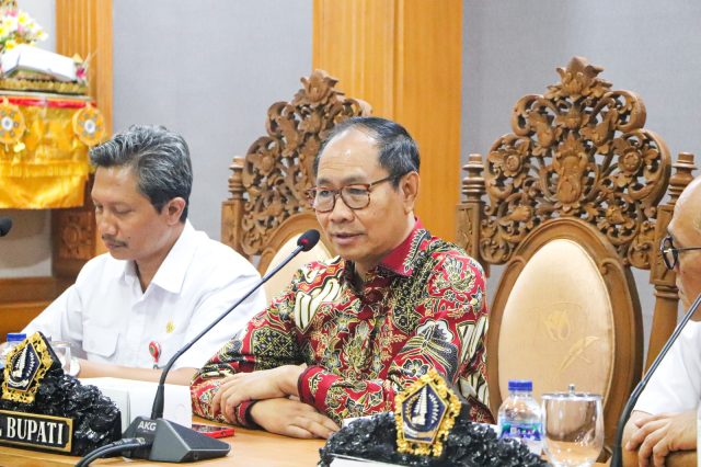 RAPAT SINKRONISASI – Wabup Ketut Suiasa saat memimpin rapat sinkronisasi dengan pertamina selaku pihak operator, Rabu (7/2) di Puspem Badung.